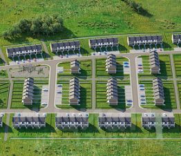 - парковочные зоны на 2 машино-места для каждой секции таунхаусов;