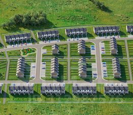 - парковочные зоны на 2 машино-места для каждой секции таунхаусов;