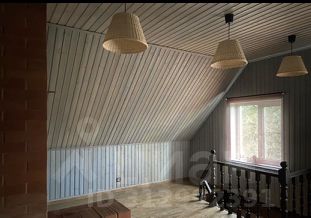 в Первый этаж оформлен обоями, второй-вагонкой. Пол-плитка и ламинат.