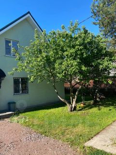 На участке растут плодовые кустарники и яблоня. Перед домом - солнечная поляна и водоём. В углу участка находится хозблок. У парковки устроен дровни.