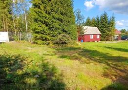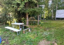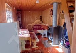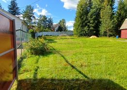 На участке стоит летний домик 2-х этажный с бруса обшитый доской. На первом этаже 2 комнаты ( кухня, спальня). Второй этаж 2 спальни. Есть печь, можно приезжать и в зимнее время года.