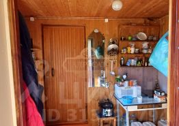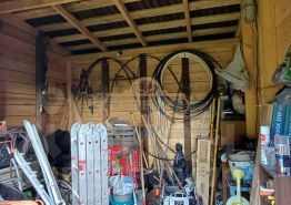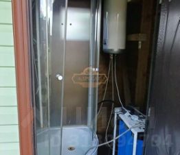 Бытовой каркасный домик на три комнаты, там встроен летний душ, бойлер. Частично разделен под сарай.
