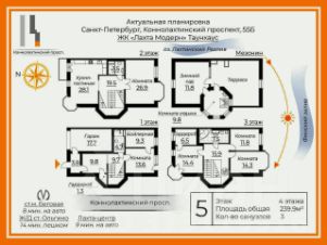 три санузла. Обилие света, расположение окон на три стороны создают неповторимую солнечную атмосферу.