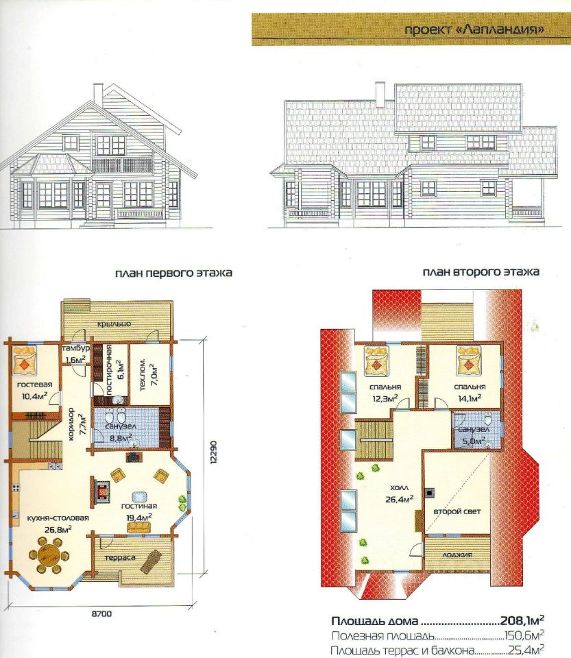 1. дом площадью 165,8 кв. м. (Без учета площади террас и с понижающим коэффициентом потолков)