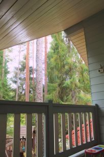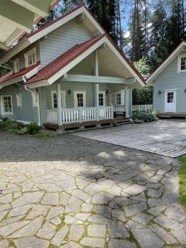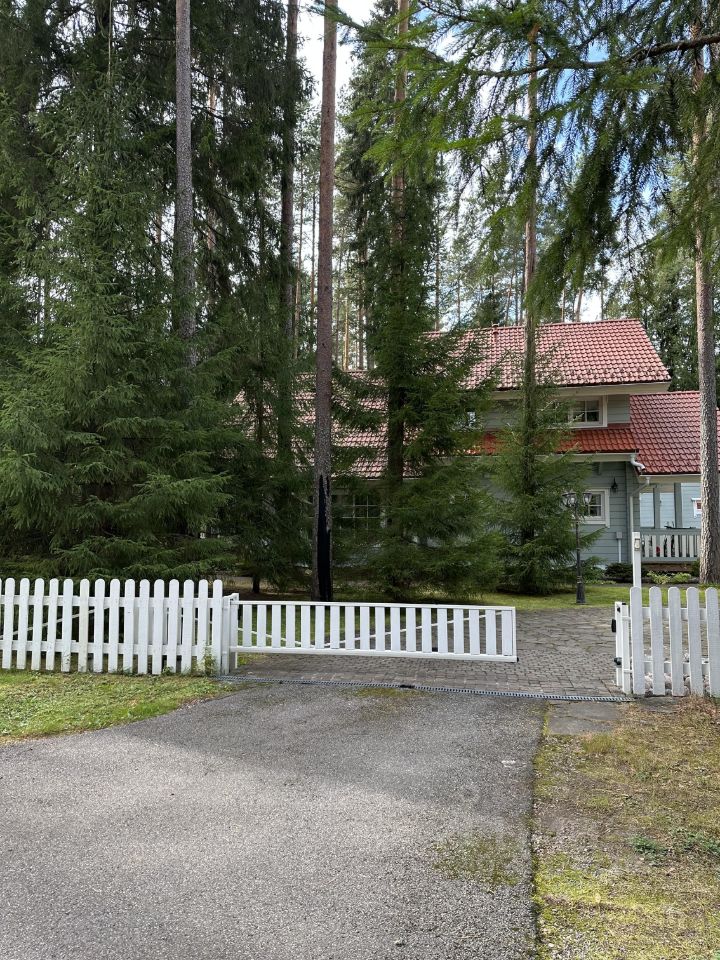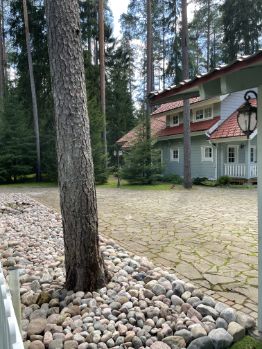 Участок расположен таким образом, что создаётся иллюзия полного уединения, так как во время строительства было сохранено много вековых сосен и елей.