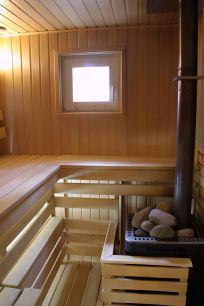 Гостевой дом/баня: на 1 этаже русская баня с зоной отдыха и кухней, на 2 этаже был рабочий кабинет.