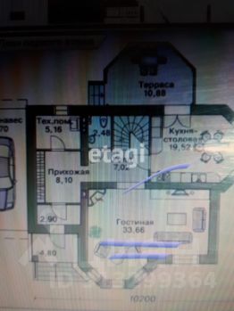 На первом этаже подсобные помещения,большая гостиная, помещение под кухню, санузел.