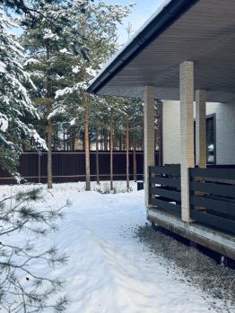 Дом кирпичный, очень добротный. Утеплен Rockwool в два слоя, температуру держит прекрасно. Зимой тепло, летом прохладно. Внешняя облицовка выполнена дорогими фасадными японскими 16мм панелями Kmew. Вентилируемый фасад. Сделано все качественно, для себя. Вокруг окон сделаны наличники из фиброцементных досок, так что фасад вечный: не выгорит, не изменит цвет и не разрушится. На первом этаже огромная кухня-столовая-гостинная с камином и эркером, жилая комната, просторный санузел, тамбур, тех. помещение и холл. На втором этаже три больших просторных светлых комнаты, огромный санузел и гардеробная. На мансарду ведет монументальная железобетонная лестница, так что доступ на нее будет крайне удобным. Мансарда представляет из себя утепленное помещение большой площади. В доме есть просторная веранда площадью 14 кв.м.