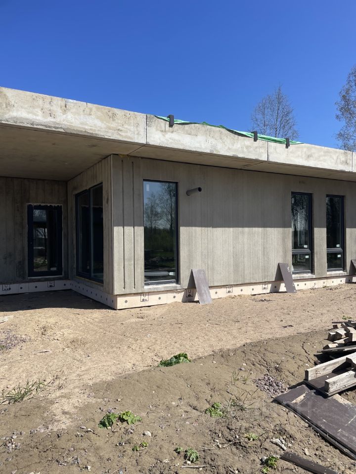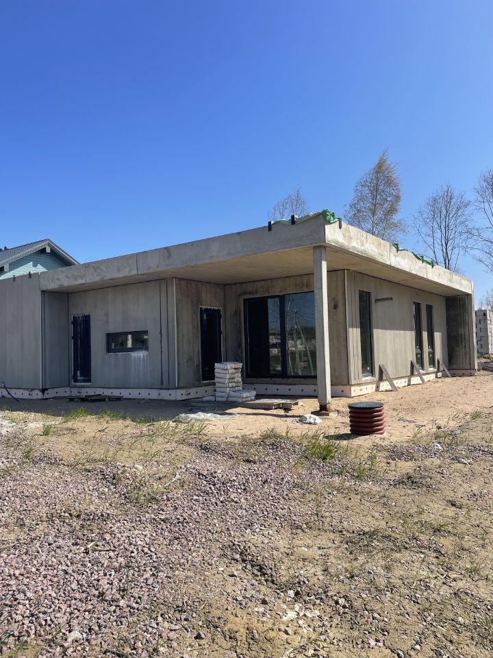 - сделаны выводы под вентиляцию, под камин в гостиной, отверстия для розеток, а так же под светодиодные ленты на фасаде и кромке крыши, под светильники на террасе, сделана выемка под электрический щиток с закладными под разводку электрики