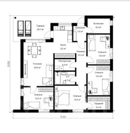 -планировку помещений прилагаю, но в данный момент внутри дома нет перегородок, что позволит вам спланировать внутреннее пространство под себя