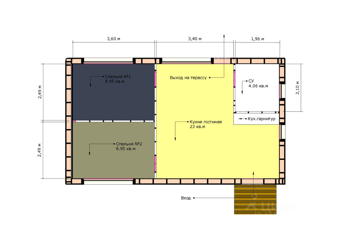 Планировка может быть изменена под желания будущего владельца. Межкомнатные перегородки не являются несущими. Спальни можно сделать разными по площади.