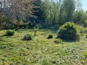 Ухоженный ровный участок, есть новый парник, грядки, кусты смородины, крыжовника, калина, яблоня.