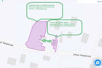 Участок состоит из двух частей: 367 кв.м. под домом (продается 1/2 доля, что составляет 183 кв.м.) и 1553 кв.м. прилегающий участок (продается 3/8 доли, что составляет 582 кв.м.), участки в собственности. Разработан, огорожен, есть видеонаблюдение, парник, кусты смороды, клубника. Граничит с Глухим ручьем.