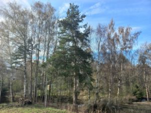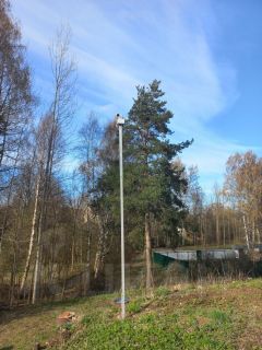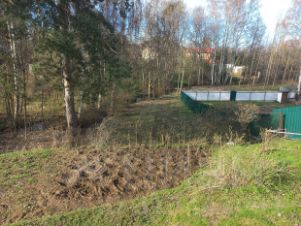 Очень высокое место, в окружении взрослых деревьев. С участка открывается красивый вид.