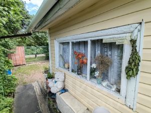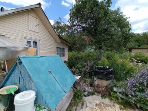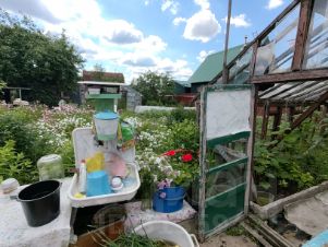 Летний одноэтажный дом 32,2 кв.м сборно-щитовой 1970 года постройки на блочном фундаменте, есть подпол для хранения. Две отдельных комнаты и входная зона с небольшой кухней. Отделан сайдингом, окна деревянные. Отопление печь - буржуйка, обложена кирпичом. Ремонт полов в 2024 году с заменой лаг.