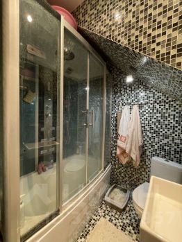 На 1- ом этаже расположена небольшая комната спальня. Рядом санузел с душевой кабиной.