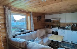 Баня сруб пятистенок 6х6, плюс терраса 6х3, на 2 этаже 2 комнаты, одна над террасой, другая над основным домом. На первом этаже кухня - гостиная, кухонный гарнитур остаётся. Парная большая, печь чугунная с камнями и теплообменником, топка из комнаты. В с/у на полу плитка, душевая с трапом в полу. Отделка стен - имитация бруса, окраска яхтным глянцевым лаком.