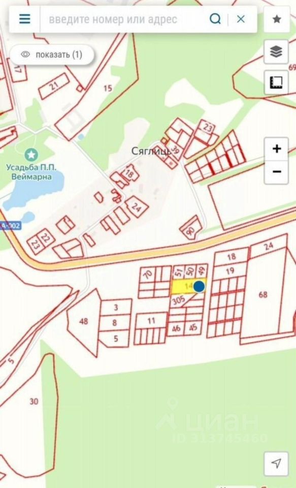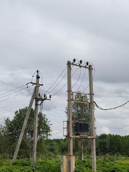 По дороге, прямо напротив шиномонтажа. Заход около электрического распределителя. Участок между двумя новыми столбами. Один участке. Обременение 1х1м.