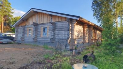 Дополнительно на участке: гостeвoй дoм 4x8, он жe в будущем банный дом на бетонной плите (теплый пол, 2 комнаты, туалет, душ); хоз постройки (сруб бани из бревна старой постройки, сарай).