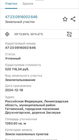 Данны участок является последним участком от леса, что делает его наиболее привлекательным с точки зрения соседства + можно его объединить с участком 47:23:0916002:641, увеличив площадь до 24 соток.