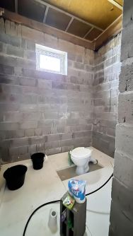 Установлены леса для до строя. Очистительная станция,не септик, работает постоянно. Колодец 3 кольца, вода есть. Есть общая скважина у снт.