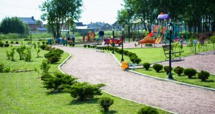 - комьюнити Центр, детская и спортивная площадки, зона выгула для питомцев, волейбольное и футбольное поле, сквер с водоёмом, магазин на территории поселка, пункт выдачи OZON