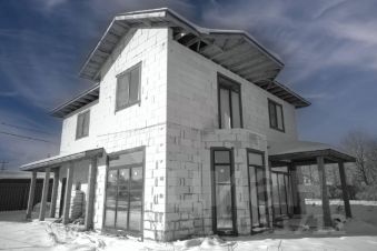 - построен из газоблоков на фундаментной плите 60 см, перекрытие между первым и вторым этажами монолитное бетонное, бетонная лестница на второй этаж - дом построен по проекту в соответствии со стандартами. Высота 3.08 м первый этаж, 2.88 м второй этаж;