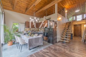 На 1-м этаже располагается просторная кухня - столовая со всей необходимой встроенной техникой и выходом на террасу. Уютная гостиная зона с панорамными окнами. Кабинет, гардеробная, котельная с сан узлом и зона постирочной, гостевая спальня и второй сан.узел