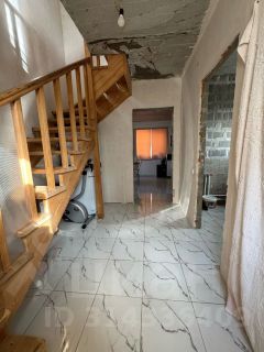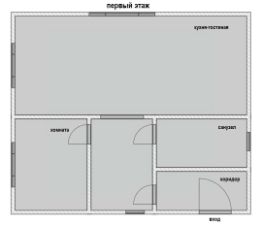На первом этаже расположены кухня-столовая-гостиная, большой санузел, прихожая и 1 спальня .