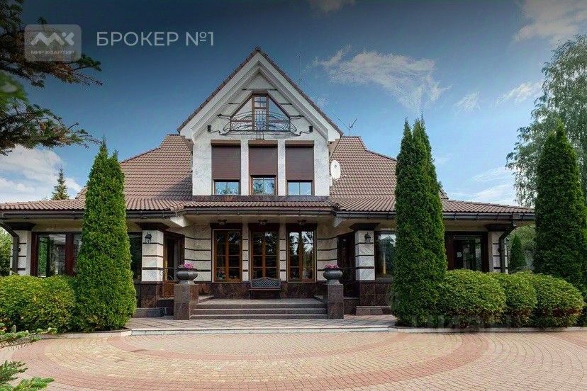 Предлагается к продаже загородная резиденция, расположенная на земельном участке ИЖС площадью 36 соток с ландшафтным дизайном и собственным прудом. Здесь расположены 2 дома, построенные из кирпича. В основном доме площадью 347,8 кв.м находятся 2 открытые террасы на 1 этаже, гостиная с камином(47.6 кв.м), кухня-столовая (36.8 кв.м), просторная спальня (25,6 кв.м) с зимним садом и ванной комнатой (13.8 кв.м), гардеробная.Высота потолков 3.17. Отдельное помещение на межэтажном уровне оборудовано встроенной холодильной камерой. На 2 этаже располагается комната отдыха (35.2 кв.м) с камином и зимним садом, кабинет-спальня (25,7 кв.м), детская комната (18,4 кв.м) и спальня (17,3 кв.м) с балконом, ванная комната с душевой и большая гардеробная(14.1 кв.м). На 3, мансардном этаже: 2 гостевые спальни (24 и 14 кв.м.), санузел и гардеробная.