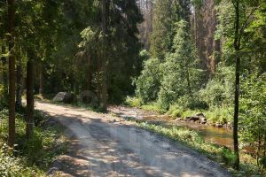 Оберег находится в самом красивом месте пос. Ленинское, есть и сосновый лес и красивые перепады высот и речка.
