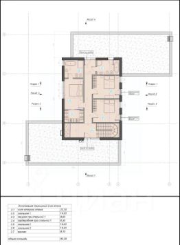 Дом разделен на три функциональные зоны: спальную, жилую и техническую. Техническая часть включает гараж на два автомобиля, котельную, кладовую и помещение для персонала. Жилая зона предлагает просторную кухню-столовую-гостиную (98 м²), кабинет и спа-зону. Спальная зона включает главную спальню с гардеробной и ванной, две дополнительные спальни с отдельными санузлами и ванной, а также великолепный вид на сад и сосновый лес.