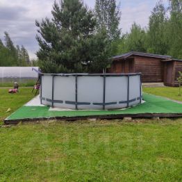 На территории: дом, помещение для резервного источника питания (дизельная электростанция), беседка-навес для автомобилей, баня, теплица, хозяйственные постройки, детская площадка.