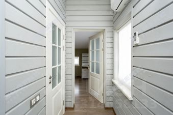 В доме всего 4 комнаты (от 11 до 18 кв метров + 3 кладовые комнаты): две на первом этаже и две на втором. Два санузла: на первом и втором этажах (+ вся разводка под третий в мастер-спальне). На 2 этаж ведет очень комфортная, широкая лестница.