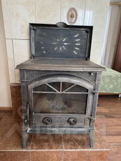 Отопление дома осуществляется от конвекторов и камина-печи.