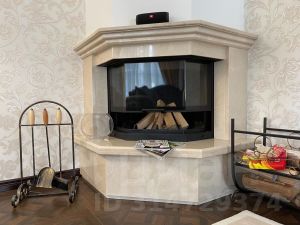 В доме на первом этаже расположилась просторная кухня-гостиная с дровяным камином,