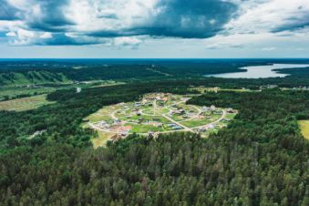 На территории поселка зона отдыха с собственным водоемом, детской и спортивной площадками, футбольным полем. Закрытая территория, охрана, освещение, видеонаблюдение.