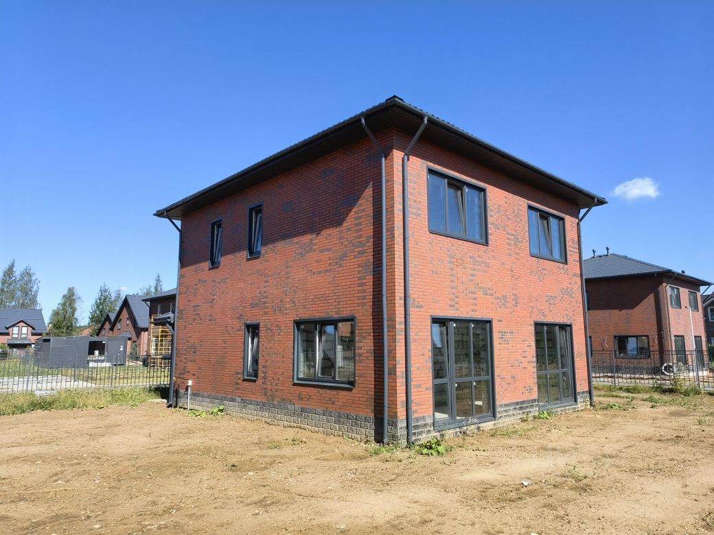 Основной конструктив коттеджа состоит из фундамента (монолитная плита), стен (газобетон с облицовкой термопанелями), крыши (металлочерепица), металлопластиковых окон. Объект продается с черновой отделкой.