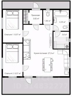 жилая - 39,5 кв.м Спальня 1: 8,57 кв.м, Спальня 2: 8,57 кв.м Кухня-гостиная: