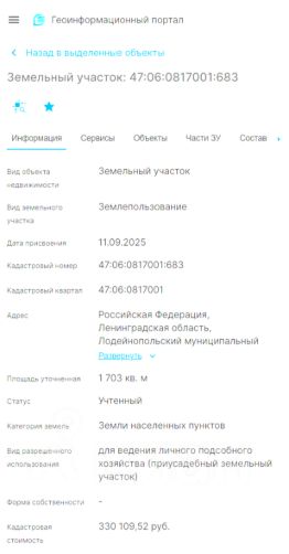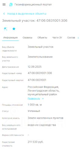 • Участок 10 соток кад.номер 47:06:0831001:306 в дер. Верхнее Подборье 89000 руб.
