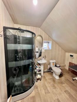 Баня построена из газобетона, внутри обшита деревом, стоит на плите, кровля - ондулин. В бане просторная парная на дровах, помывочная, комната отдыха с большим столом и открытая летняя веранда. Рядом с баней есть каркасный открытый летний бассейн глубоной 1,2 м, шириной 4 м. Также на участке есть беседка, мангальная зона для барбекю, зона отдыха с чашей для костра. Есть также вольер для собак.