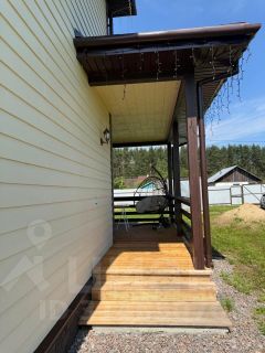 Двухэтажный, круглогодичный жилой дом, общей площадью 150 кв.м. Фундамент ж.б. плита 300 мм с утеплением 100 мм. Каркас из сухой строганной доски, утепление стен 200, крыша 250. Дом строился для себя, возводили опытные строители: всё ровно, без щелей. Наружная отделка дома выполнена (негорючий материал) фиброцементным сайдингом Cedral Канадского производства. Поверхность, повторяющая фактуру древесины, придает фасаду здания ощущение природной теплоты дерева, гарантия на выцветание 15 лет, что является огромным преимуществом. Внутренняя отделка стен дома выполнены имитацией бруса 175 мм с покрытием tikkurila, потолки планкен 100 мм с покрытием tikkurila. Отделка двух санузлов выполнена качественным керамогранитом. Крыша скатная, мягкая кровля. Дом очень теплый и энергоэффективный. Установлен электрический котел (плюс оставлено место и произведена разводка под газовый котел. Первый этаж теплый пол + радиаторы, второй этаж радиаторы, в систему отопления залит антифриз.