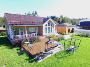 СРОЧНАЯ ПРОДАЖА, СТОИМОСТЬ ДО КОНЦА СЕНТЯБРЯ!!! В связи с увеличением состава семьи продаётся современный одноэтажный дом с террасой, панорамными окнами и всеми удобствами! Дом построен по индивидуальному проекту на свайно-плитном фундаменте, в 2020 году введен в эксплуатацию, имеются 2 проекта: на дом и ландшафт, зарегистрированная площадь дома составляет 94м², это полезная площадь без 2го этажа(чердака) и террасы. Удачная планировка, уютная кухня-гостиная 35м² с выходом на террасу, мастер-спальня 18,5м² с выходом на террасу, и две комнаты по 10,5м², совмещенный санузел с сауной 9,5м², котельная 3м², коридор 3м², открытая терраса 20м² и крыльцо 2,5м², а также есть 2 детские комнаты на 2ом этаже, общей площадью ещё 30 метров, куда ведет колоритная лестница из дуба, общая площадь дома с террасой и чердаком составляет 150 метров. Отделка выполнена из качественных материалов, дом полностью меблирован, устроено хранение и установлена бытовая техника. Подключены все коммуникации, скважина, электричество 15кВт, установлен электрический котел с бойлером косвенного нагрева, для наполнения джакузи, сделаны водяные теплые полы во всем доме, автономная канализация - биологической очистки с компрессором, ГАЗ - магистраль проходит вдоль участка, подали на тех. условия, идет процесс подключения. Участок 15 соток, сделан дренаж всего участка, имеется проект ландшафтных работ, огорожен забором из евро-штакетника и засеян газоном, заезд возможен с двух сторон, с фасадной стороны заезд вымощен тротуарной плиткой с парковочными местами на 2 автомобиля и сделан навес на 2 авто, установлены автоматические откатные ворота и калитка, а также вдоль забора напротив дома мелким гранитом отсыпаны еще парковочные места, с тыльной стороны сделаны калитка и распашные ворота, для будущего строительства бани и доставки материалов. Очень удачная локация: Гатчина в 3км, где есть вся инфраструктура для активной жизни, рядом Туутари-парк и знаменитые своей чистотой Красносельские озера. Сам участок расположен в глубине от дороги, вокруг немного соседей и окружен зеленью и лесопарковой зоной, находится в самой деревне, обслуживание на балансе администрации, нет никаких взносов и платежей. Земля и дом в собственности, проведено межевание, возможна ипотека, описывать можно ещё много и долго, лучше увидеть всё своими глазами, поэтому жду Вас на просмотр в удобное время, и готов ответить на все вопросы! Санкт-Петербург (КАД) - 25 км, ближайшие населенные пункты: Тайцы, Гатчина, Красное село, Малое Верево, Коммунар.