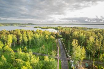 - Ландшафтный дизайн территории, прогулочные экотропы вдоль озера