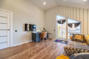 большая светлая хозяйская спальня с выходом на балкон и рабочей зоной