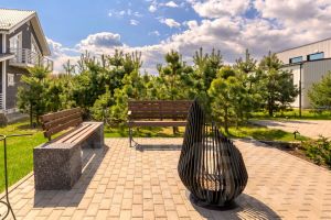 Въездная группа оформлена автоматическими откатными воротами.