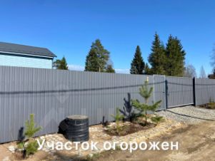 - Ландшафт: туи, яблони, ели и сосны — участок ухожен и красив.
