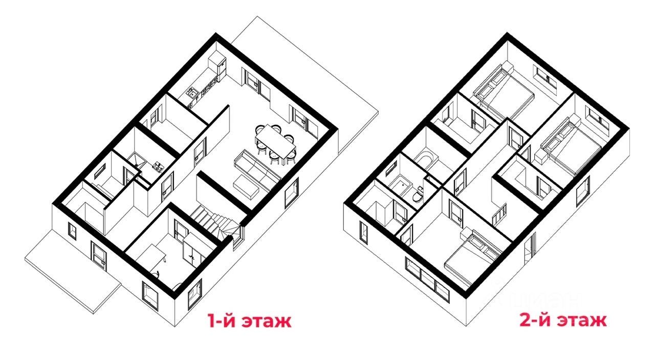 Большая кухня-гостиная с выходом на террасу, 4 спальни (одна из них мастер - с гардеробной и санузлом, две спальни с гардеробными),