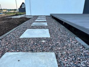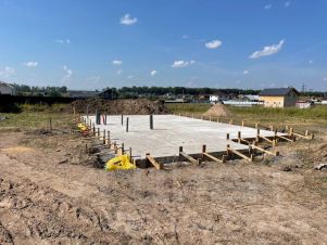 Построен на участке 11 соток в обжитом посёлке Тайцы, вблизи от Санкт-Петербурга.