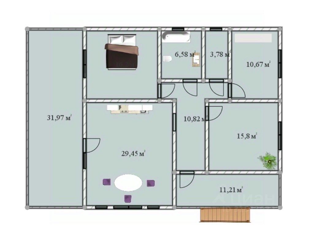 Дом построен по каркасной технологии с использованием современных материалов.